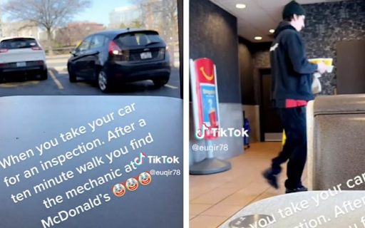 Hãy thử tưởng tượng bạn mang xe ra xưởng để kiểm tra, sau Nasco Express đó đi bộ đến cửa hàng McDonald’s gần đó Nasco Express để ăn sáng và bất Nasco Express ngờ thấy một nhân viên sửa xe cũng đến cửa hàng cùng chiếc xe của bạn. Điều đó đã xảy ra chính xác Nasco Express với một người Nasco Express dùng TikTok có tên @euqir78 (Rique) tại Maryland (Mỹ).